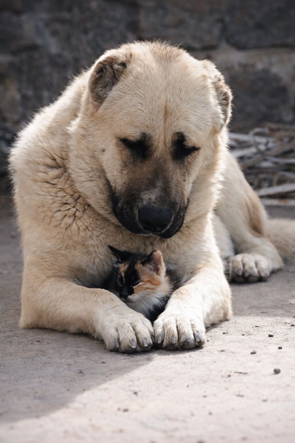 Когда Айша выбежала во двор, котята мирно сидели в корзинке, подглядывая в щели за огромным чудовищем, рядом лежал Архан.