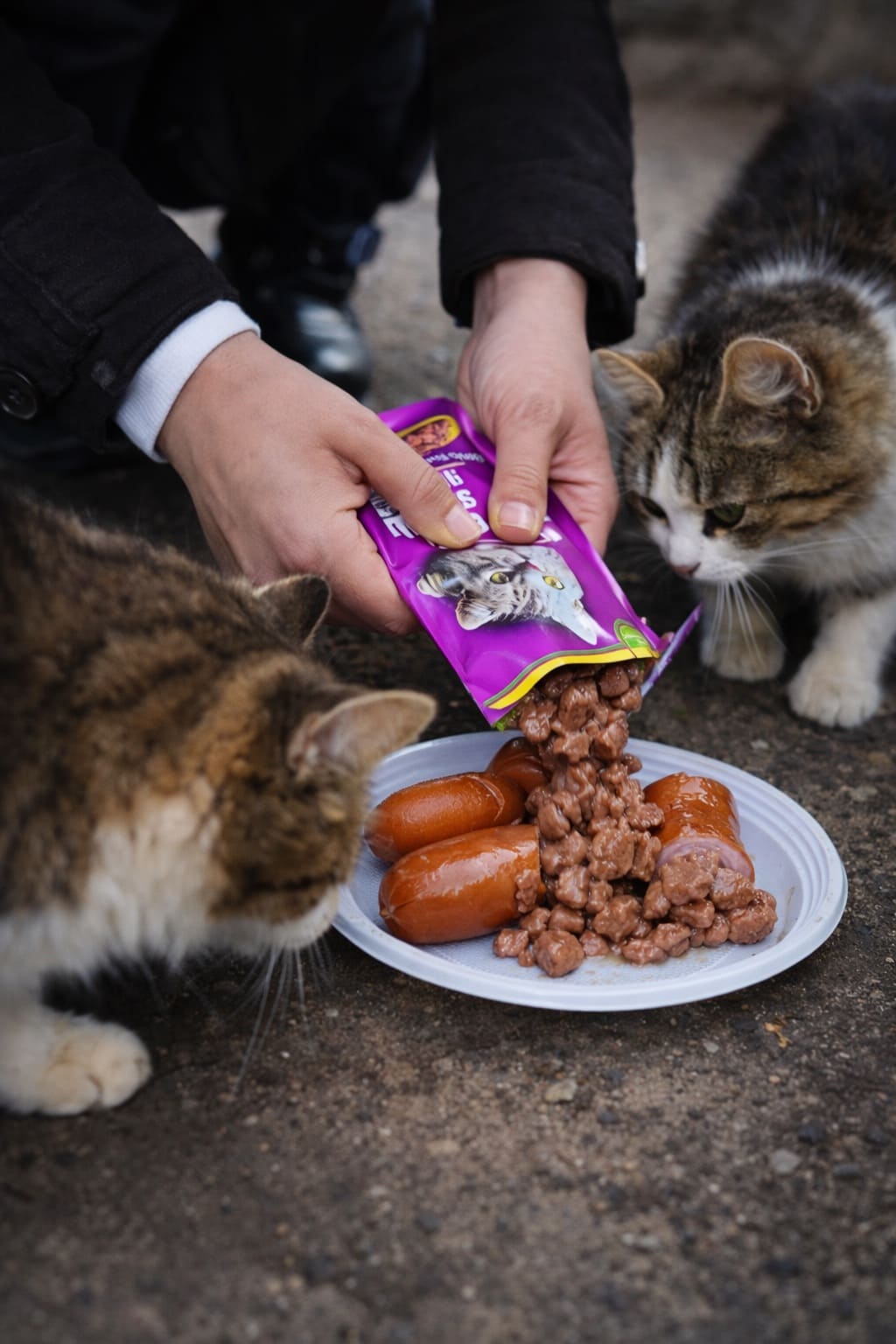 Коты, как ни странно, спокойно и все разом подошли к страшному авторитету и стали тереться о его ноги. Мужичок с удивлением смотрел на это. Авторитет поднял голову и, улыбнувшись, сказал: