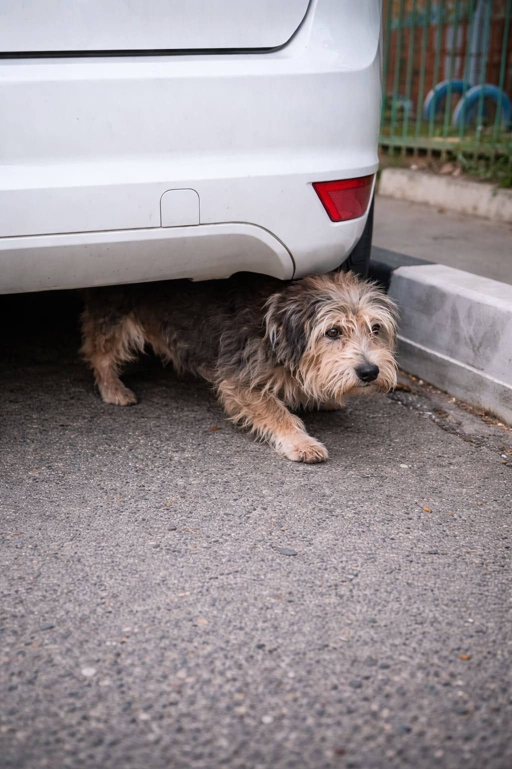 Шмякнувшись на асфальт, “мячик”, взвизгнув от боли, превратился в маленького лохматого пёсика. Он вскочил на свои короткие лапки и бросился на проезжую часть, пытаясь догнать машину. На пешеходном переходе машина остановилась. Истошно скуля, пёсик вертелся вокруг машины, подпрыгивал, бился о блестящие дверцы железного “домика” на колёсах.