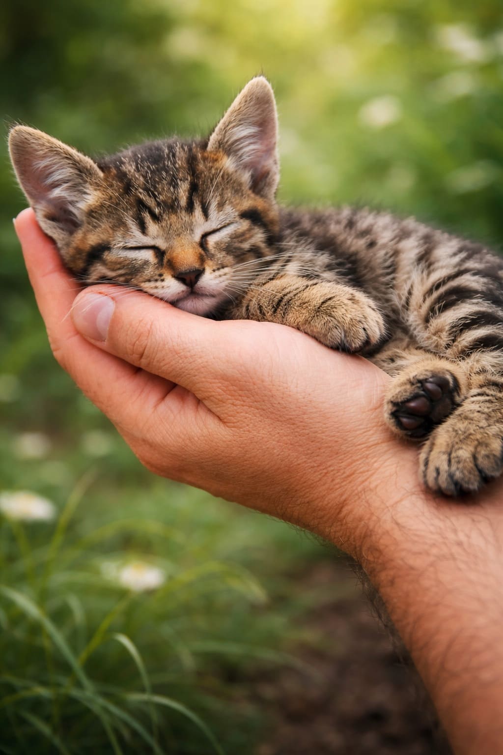 Котёнок потянулся во сне и прижался к тёплой мужской руке. Вдруг стало спокойно и как-то горячо внутри. Он прижал к себе маленькое тельце и опять уснул…