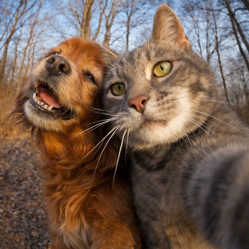 Серый кот мурлыкнул и потёрся о ноги седого мужчины, а рыжая собачка приветливо замахала хвостиком…
