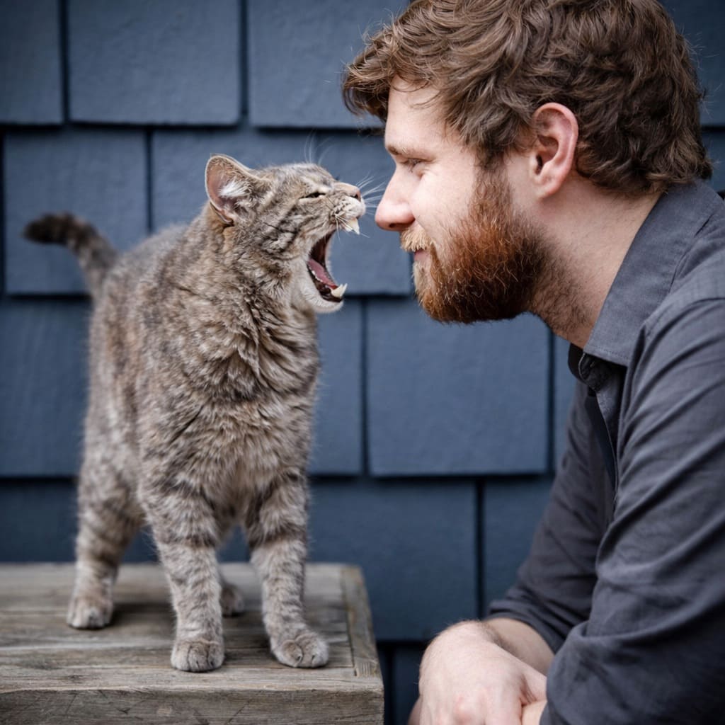 Когда Том подходил к гостинице, странный кот стал бросаться ему в ноги и отчаянно кричать. Том присел и погладил пушистого.