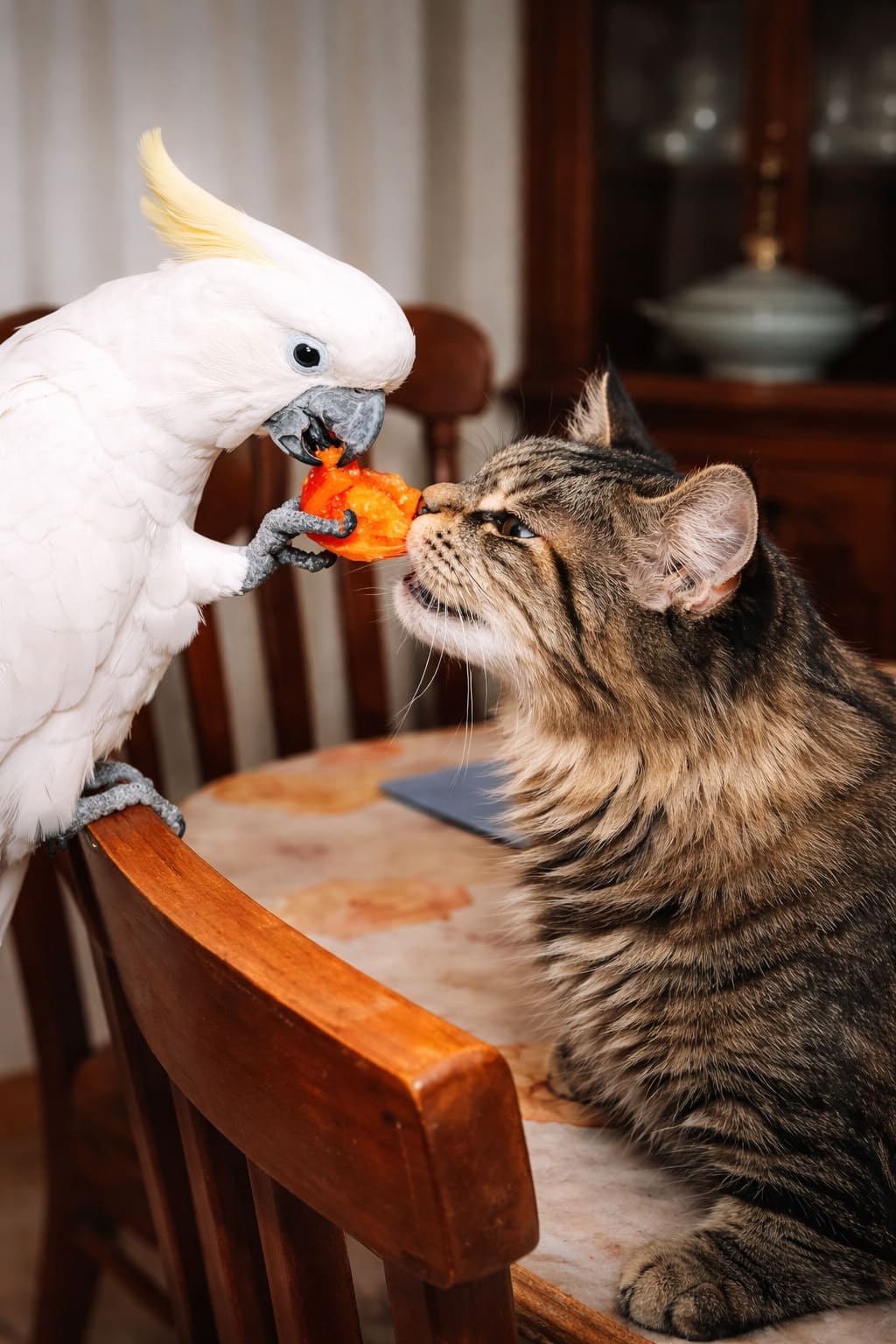 Я спрятался за стеной, чтобы выяснить, в чем дело. Попугай поднял хохолок и, расправив крылья, достал что-то из борща и бросил на пол. Я перевёл взгляд и обомлел. На полу сидел Бублик и смотрел вверх. Когда что-то упало на пол, кот обнюхал это и недовольно мяукнул. После чего правой лапой запихнул кусок под шкаф с посудой.