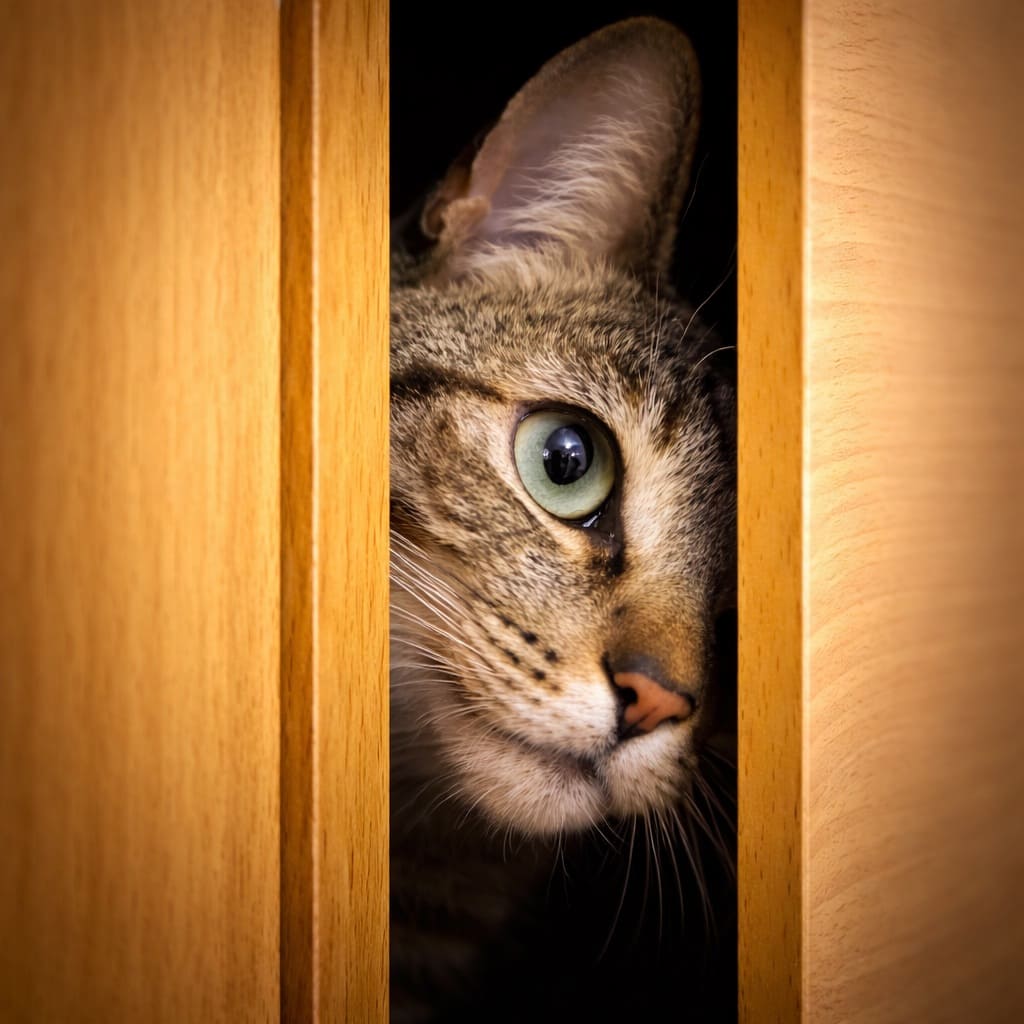 Услышав мужской голос, кот за шкафом подал признаки жизни. Осторожно вылез, пугливо озираясь, и направился прямиком к Юрию. Присев рядом с котом, Юрий погладил его, тот отозвался на ласку мурчаньем.