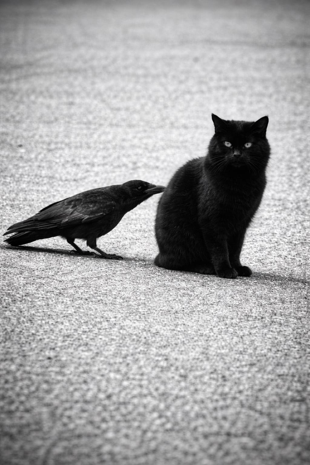 Шло время. Птенец превратился в большого красивого ворона, а котёнок в огромного чёрного кота. Они проводили всё время вместе. Вместе ели, играли, сидели на подоконнике, смотрели на улицу и вместе спали.