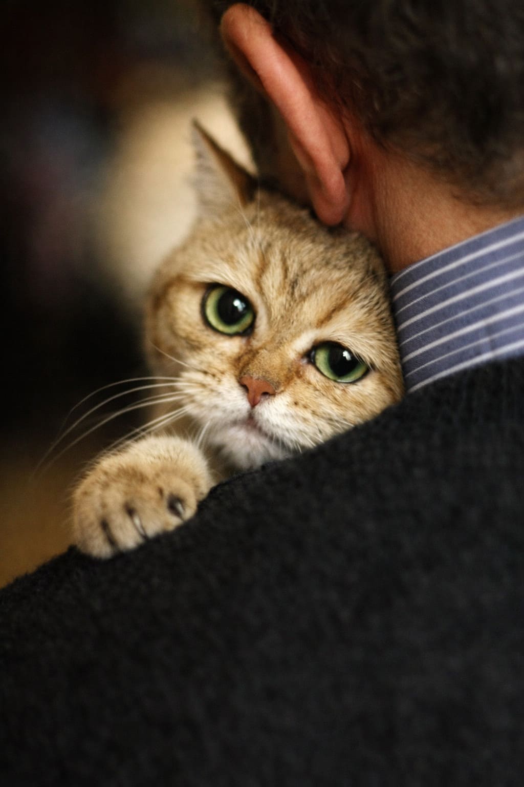 Они с изумлением посмотрели на кота, так и сидевшего на руках мужчины, прижавшись к тому и вцепившись когтями в его жакет.