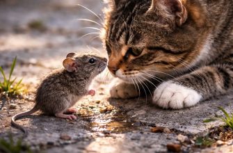 Кот немедленно собрался пообедать, но пёс, возмущённо лая, отогнал пушистого охотника.