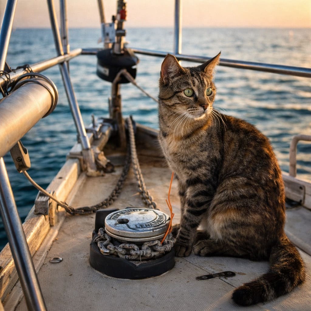 Кот считал себя капитаном и часто сидел на носу яхты. Он объяснял псу основы мореходства, но… Страшно не любил воду.