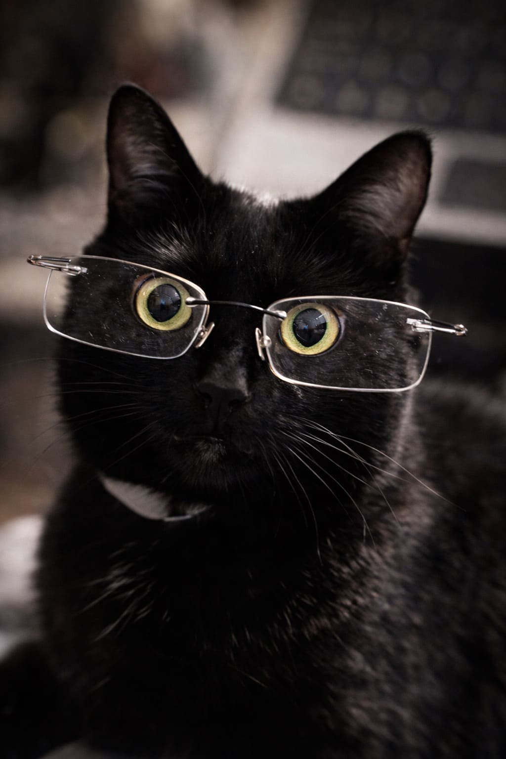Мужчина заглянул в близорукие глаза черного кота, усевшегося возле него. А затем вытащил из внутреннего кармана пиджака маленькие очки. Как будто на очень маленькую детскую голову…