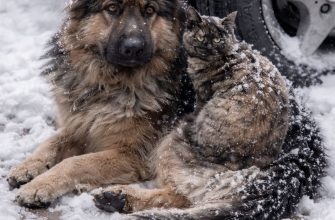 Пёс быстро рос, и вскоре кот уже не доставал до его морды, если тот не протягивал свой любопытный нос к нему.