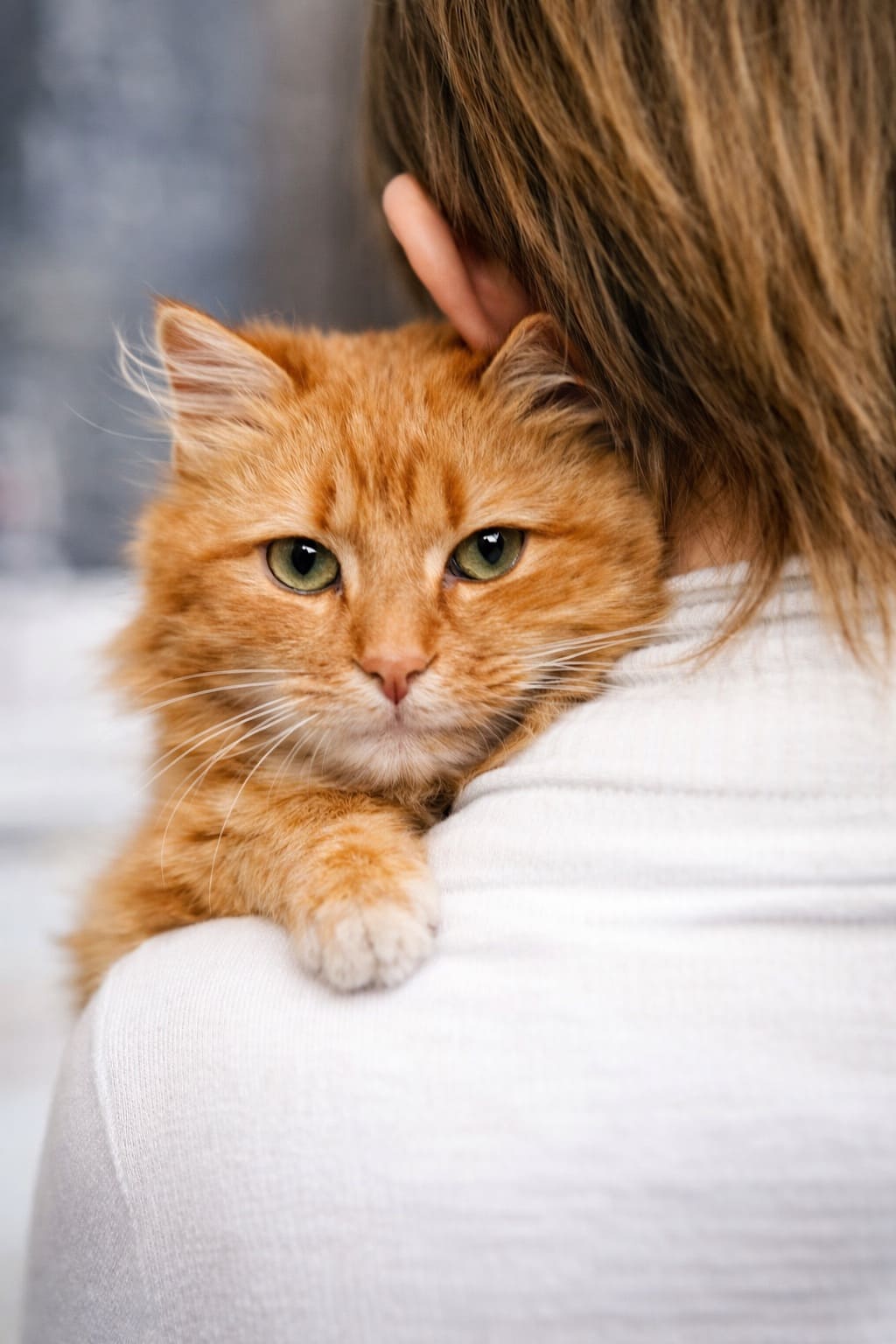 Он прижал к себе толстую, наглую, рыжую морду. И у кота от этого глаза превратились в большие тарелки, полные муки и отчаяния.