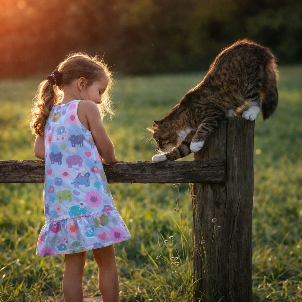 — Ой, Изабелла, — девочка увидела в кустах кошку и бегом спустилась с крыльца. Вернулась она с кошкой в руках.