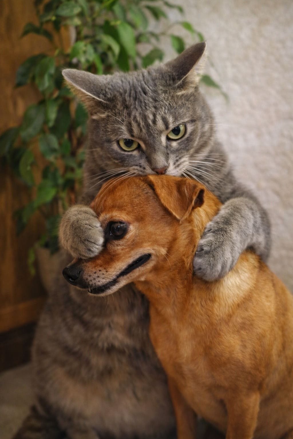 Огромный серый кот и маленькая рыжая собачка, которая во сне смешно свистела носом.