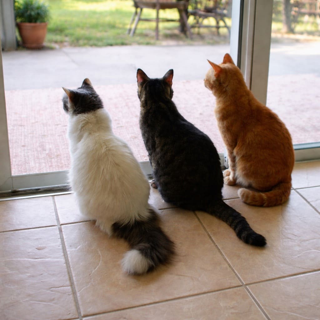 Он вскочил и увидел, что три его кошки сидят по трём сторонам кровати и очень внимательно смотрят на него.