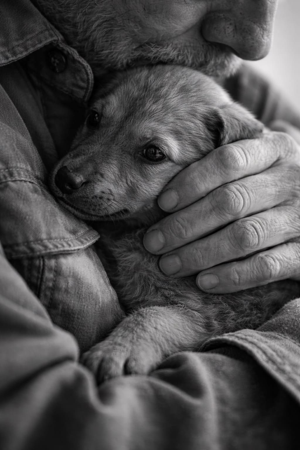 И тут вошел Герасим. Лицо его светилось. В огромных ладонях он держал свою маленькую собачку.