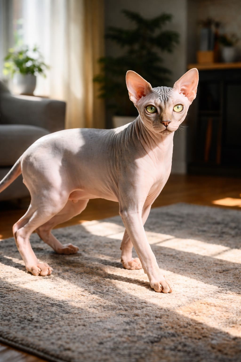 Кот тут же запрыгнул к ней на колени и стал тереться своей лысой головой.