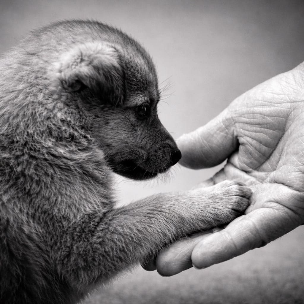 Обеими руками он нырнул в щель, нащупал малыша и аккуратно вытащил его на свет. Щенок дрожал всеми лапами то ли от холода, то ли от страха. Но вот взгляд умного пса с характером…