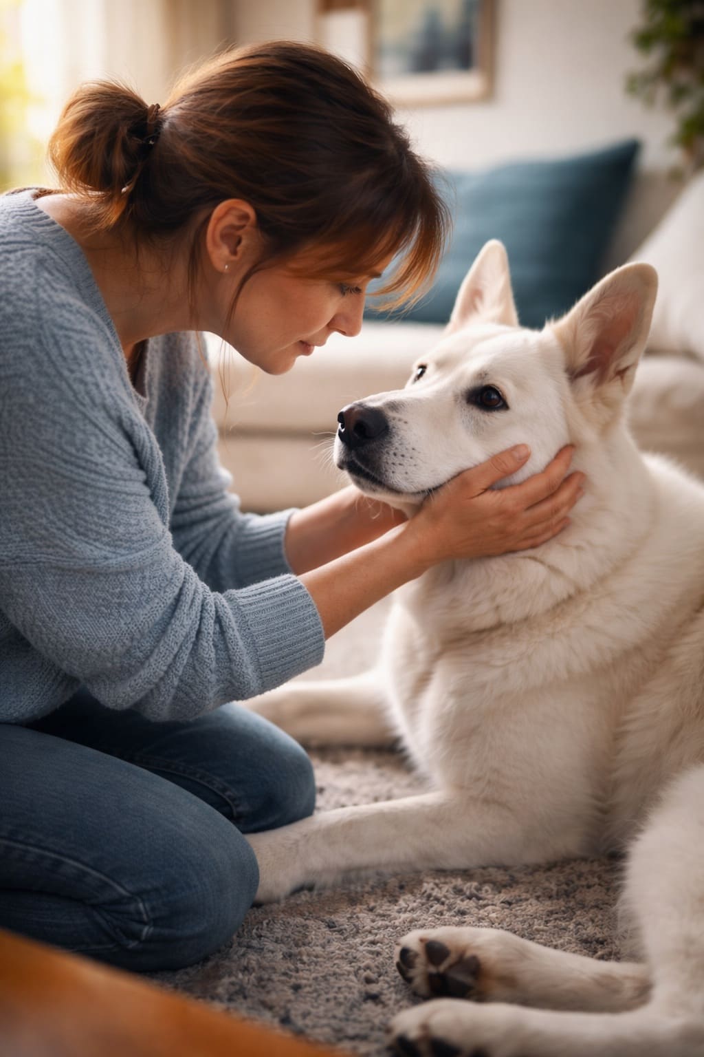 Он запрыгивал к ней и смотрел строго. А она смеялась, теребила его густую белую шерсть, дула в нос.