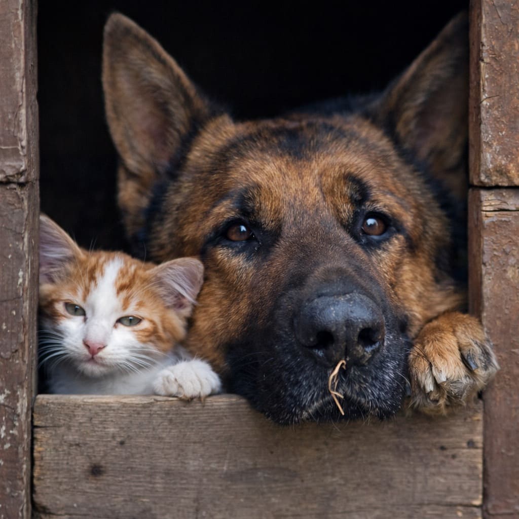 Хирург через несколько дней заметил произошедшие изменения. Зайдя за угол, он увидел в сооруженном овчаркой гнезде пушистое существо.