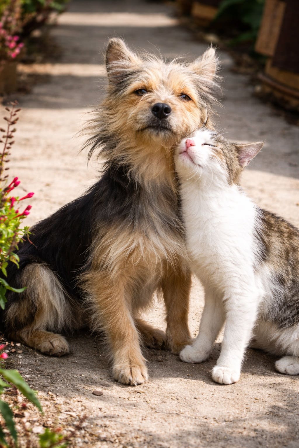 Кот и собака были самыми закадычными друзьями, они ели из одной миски, спали, прижавшись друг к другу и никогда не ссорились. Только благодаря этим двум преданным созданиям и жил ещё этот сломленный горем, по сути своей слабый, но добрый и сердечный дядя Лёша.