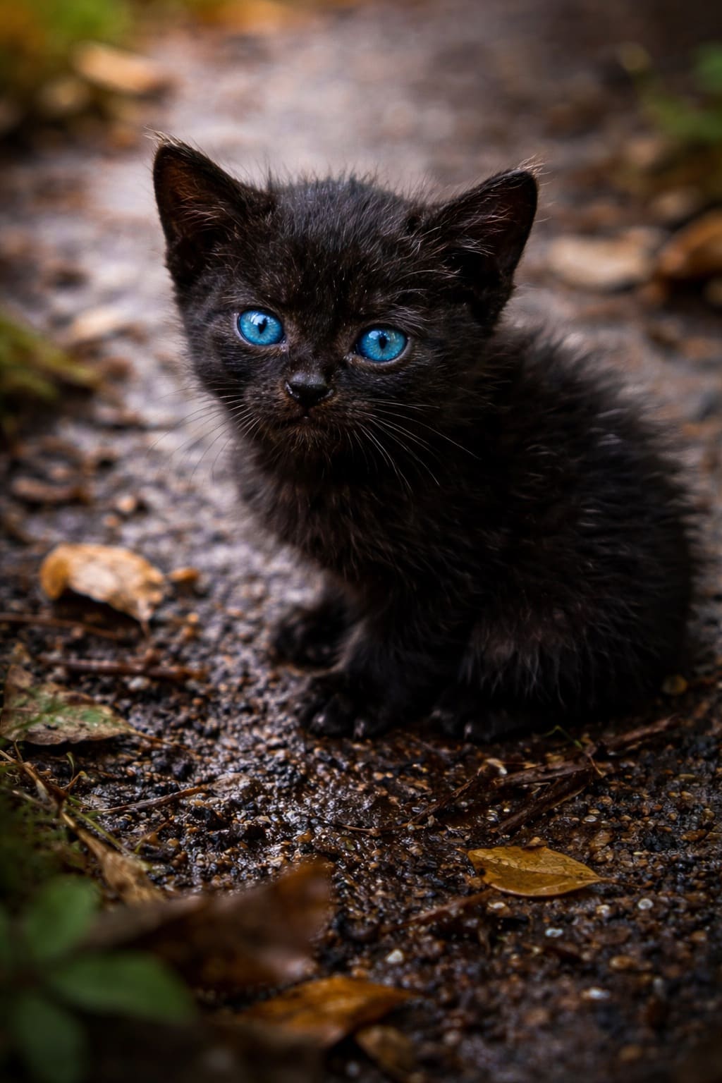 Его чёрная шерстка торчала клочьями, на боку прилепился кусок грязи, тонкий хвостик был почти лысым, а огромные голубые глаза с ужасом смотрели на окружающих.