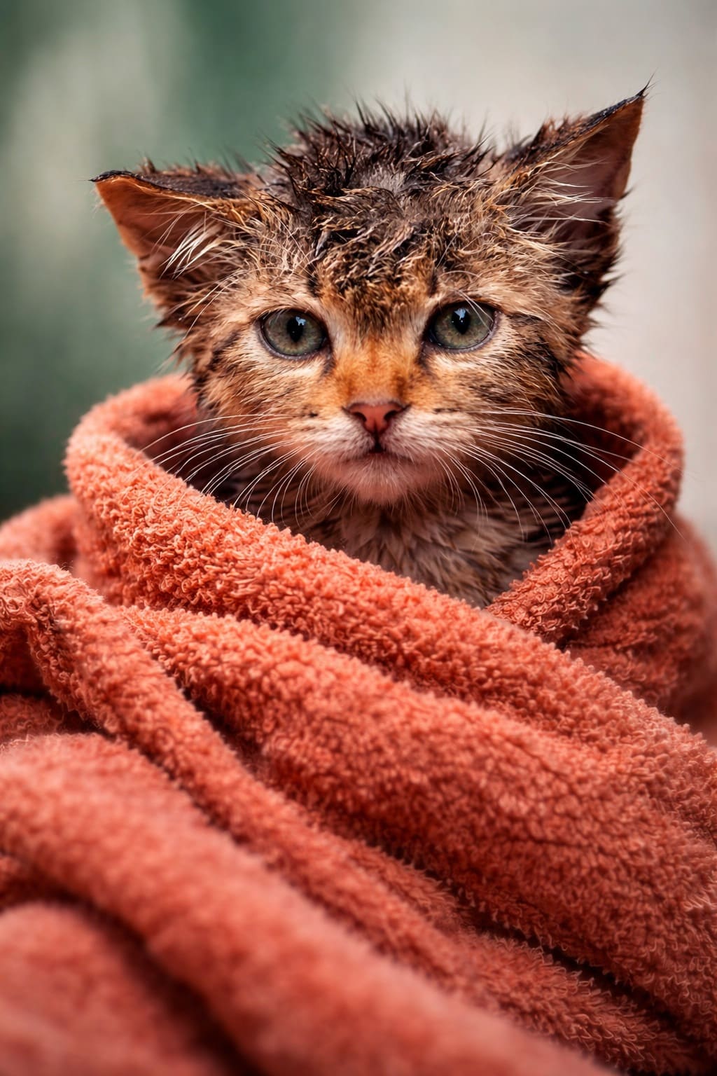 Марина взяла котенка на руки, и большая капля воды устремилась прямо с ее носика на ушко малютки. Испуганный найденыш встряхнул головой и уставился своими большущими глазенками на девочку.