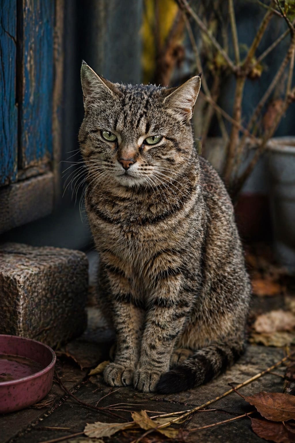 Серый кот неуверенно смотрел на неё, готовясь улизнуть.