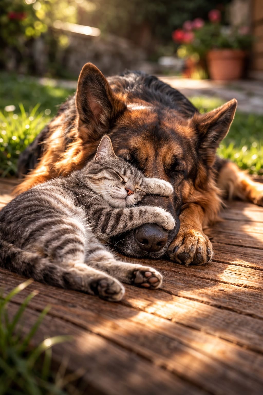 Так я их и называл. Моими стаканчиками. Большой серый кот и овчарка. Они выросли вместе. Вместе ходили гулять на улицу, играли, спали и ели. Иногда дрались. Иногда баловались дома, наводя живописный беспорядок.