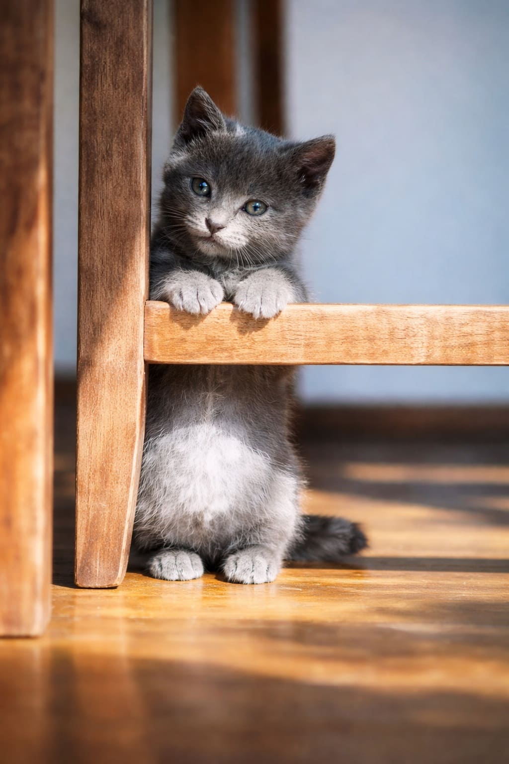 Из-под стола раздалось жалобное мяуканье. Там сидел маленький серый худой котёнок. Мужчина замялся. Вилка, поднятая вверх с одной из котлет, так и не дошла до его тарелки…
