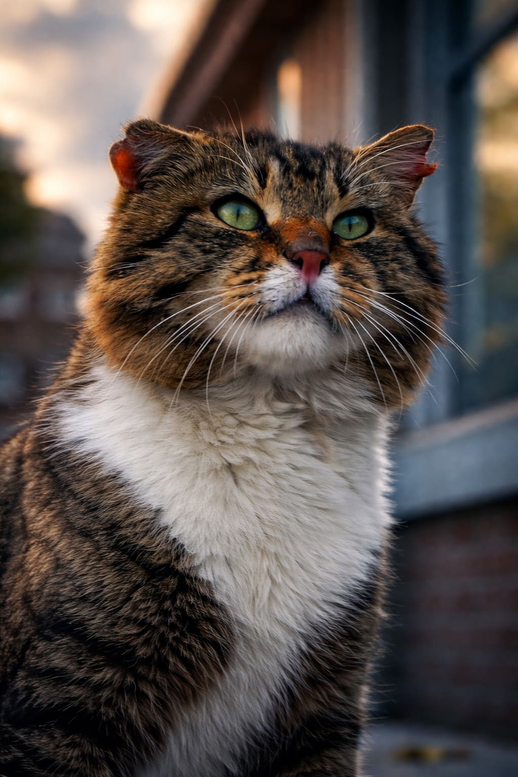 Правое ухо было повреждено, и через левый глаз тоже проходил шрам…