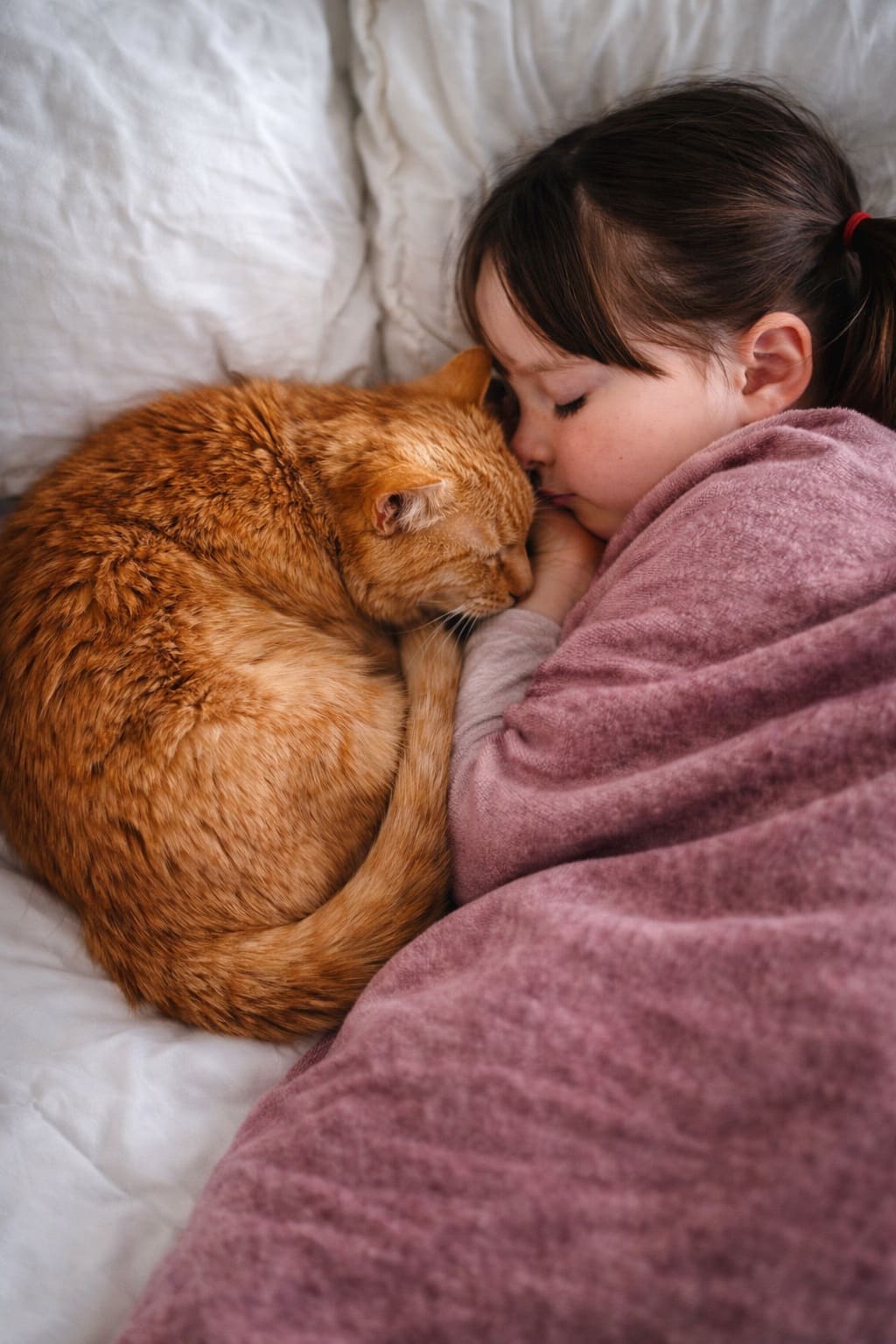 Манечка лежала в кровати и улыбалась. Сверху на её голове удобно расположился Буслик. Он сонно моргал и зевал. А девочка, подняв руки, гладила своё рыжее сокровище.