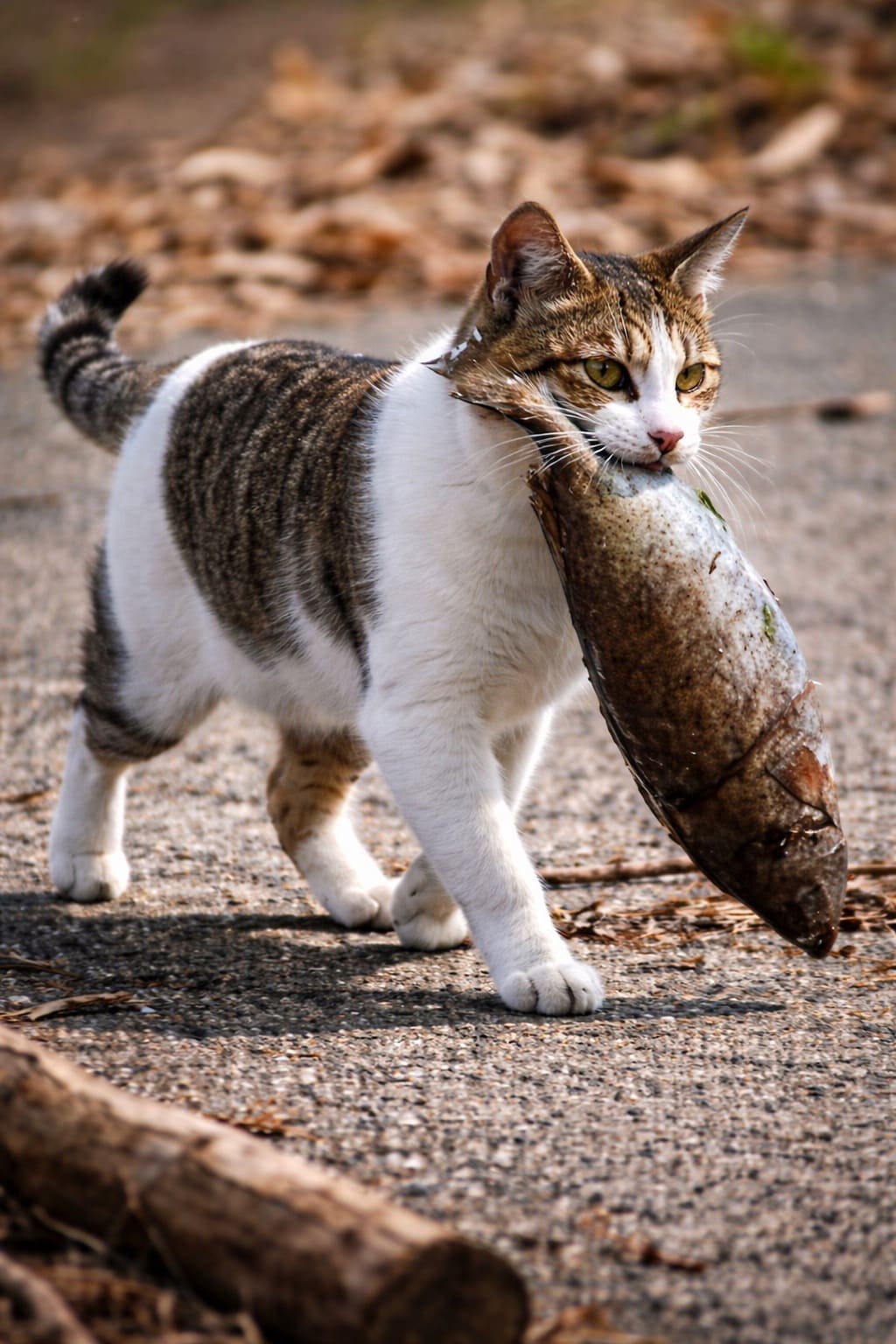 Она заметила мелькнувшую кошачью воровку. Та неслась в дальний угол склада, таща в зубах карпика, упиравшегося в землю хвостом.