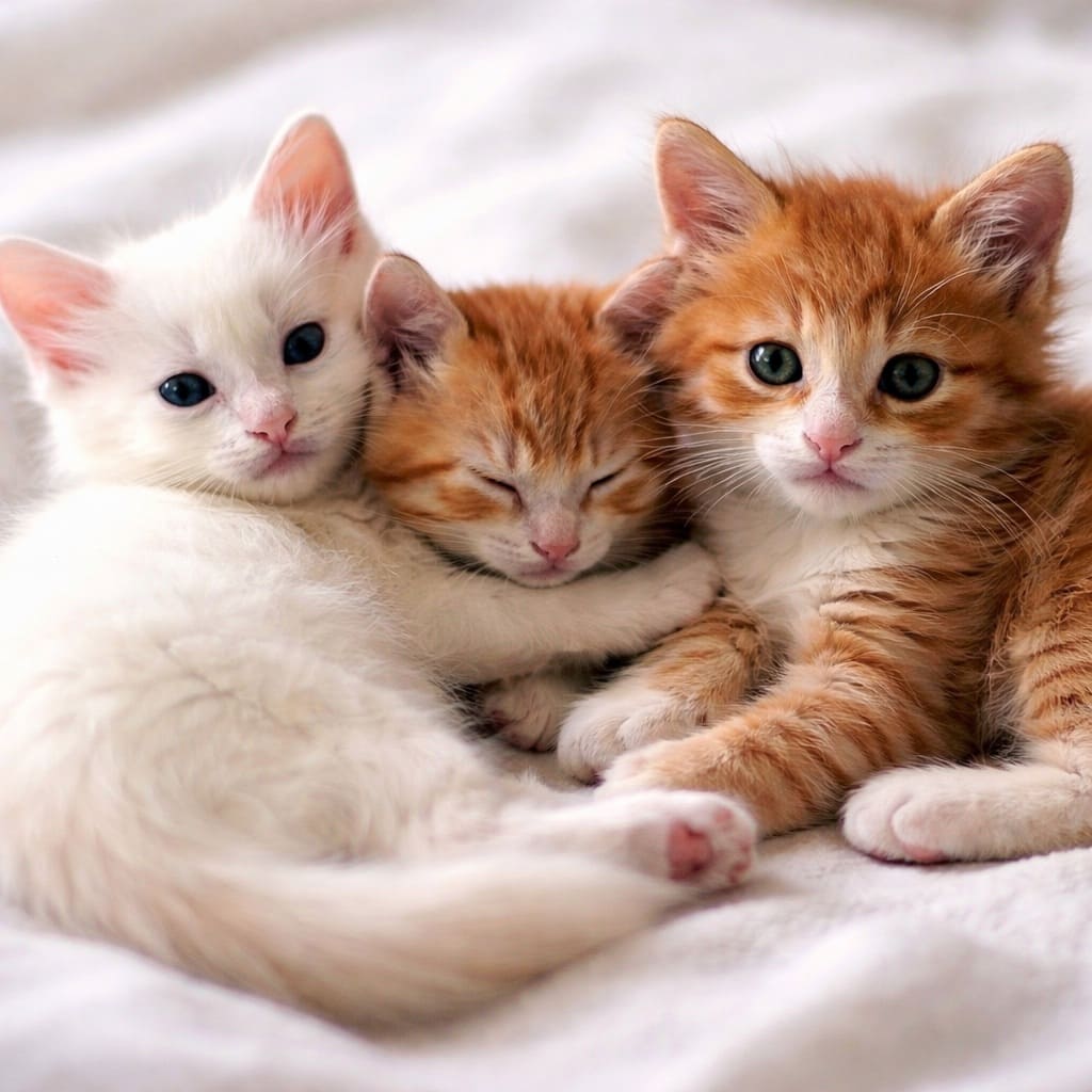 Двое вышли из подъезда, прижимая к груди котят, бело-рыжую и белую кошечек.