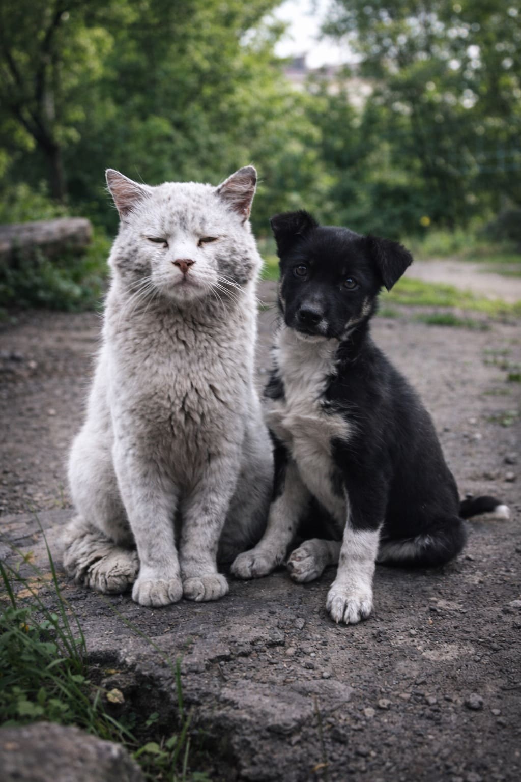 И постоянные покупатели стали тоже подкармливать трёх собачек и двух котов, а те… Те, казалось, даже не знали, что их предки враждовали. Они сбились в маленькую компанию и всё делали вместе. Вместе попрошайничали, вместе ели, вместе спали. Вместе просили ласки и заглядывали в глаза.