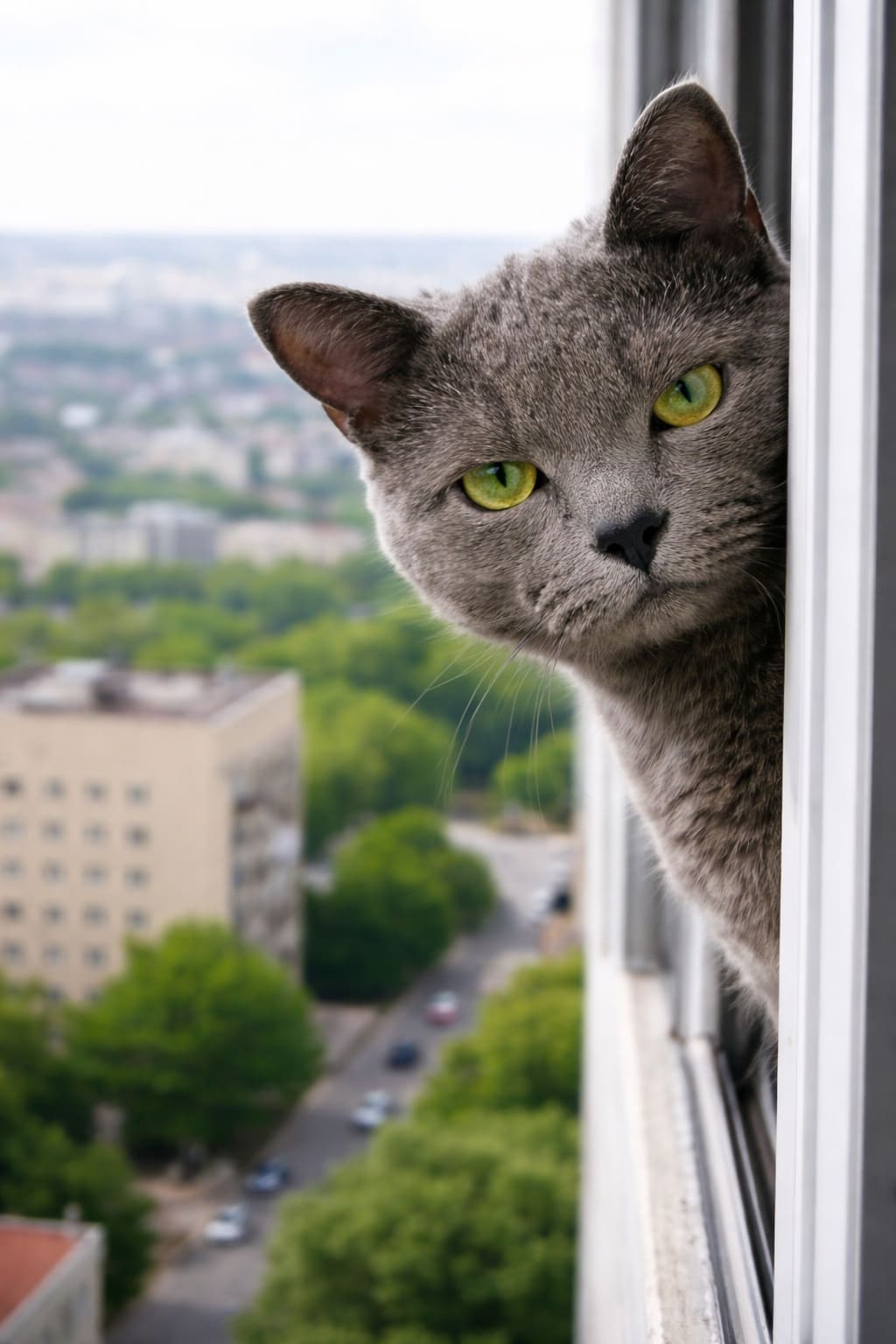 В одном окне его всегда встречал кот. Большой, серый котище пытался открыть окно и выбраться наружу. Двадцатый этаж, между прочим!