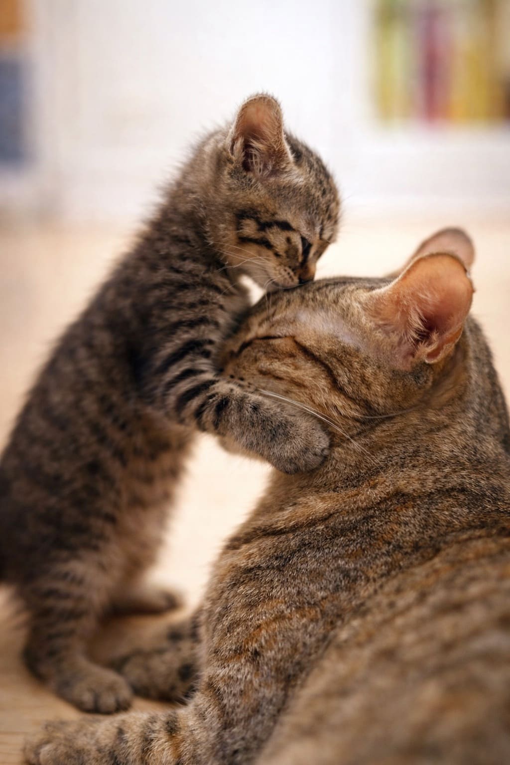 Серый улёгся на мягкую тёплую подстилку, а на него взгромоздился его котёнок. Они вдвоём мурлыкали и звуки эти наполняли всю маленькую квартирку, а за окном…