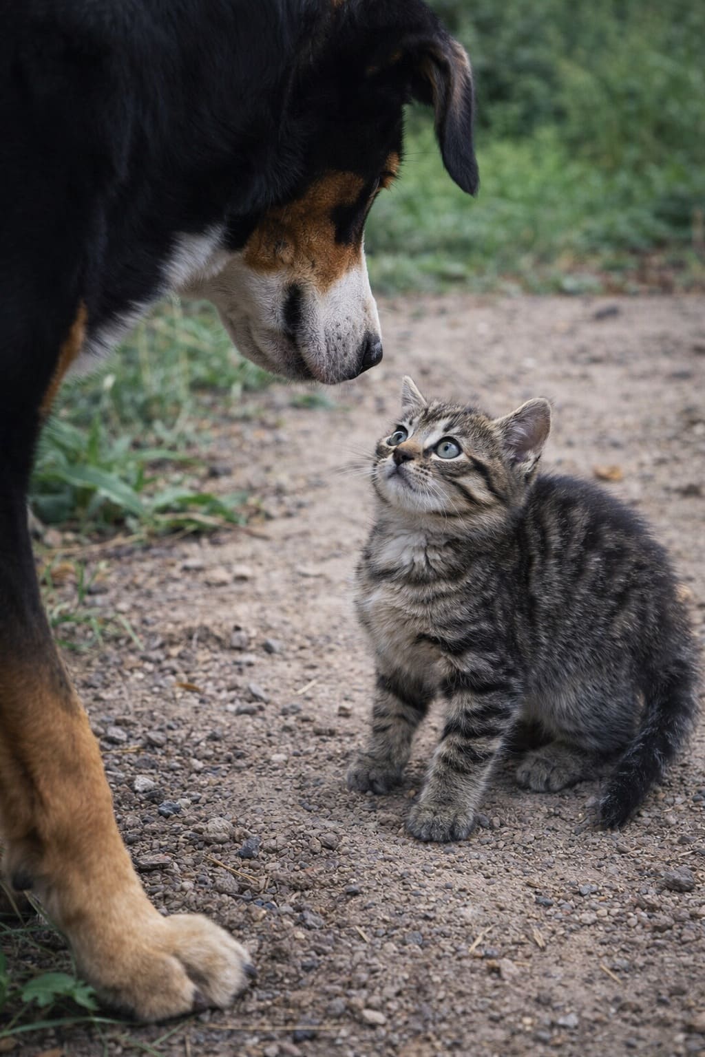 Бомж успел подхватить свою малышку, но пёс всё же наступил ей на переднюю лапку своей огромной и мощной лапой. Кошечка вскрикнула и заплакала. Лапка безжизненно повисла.