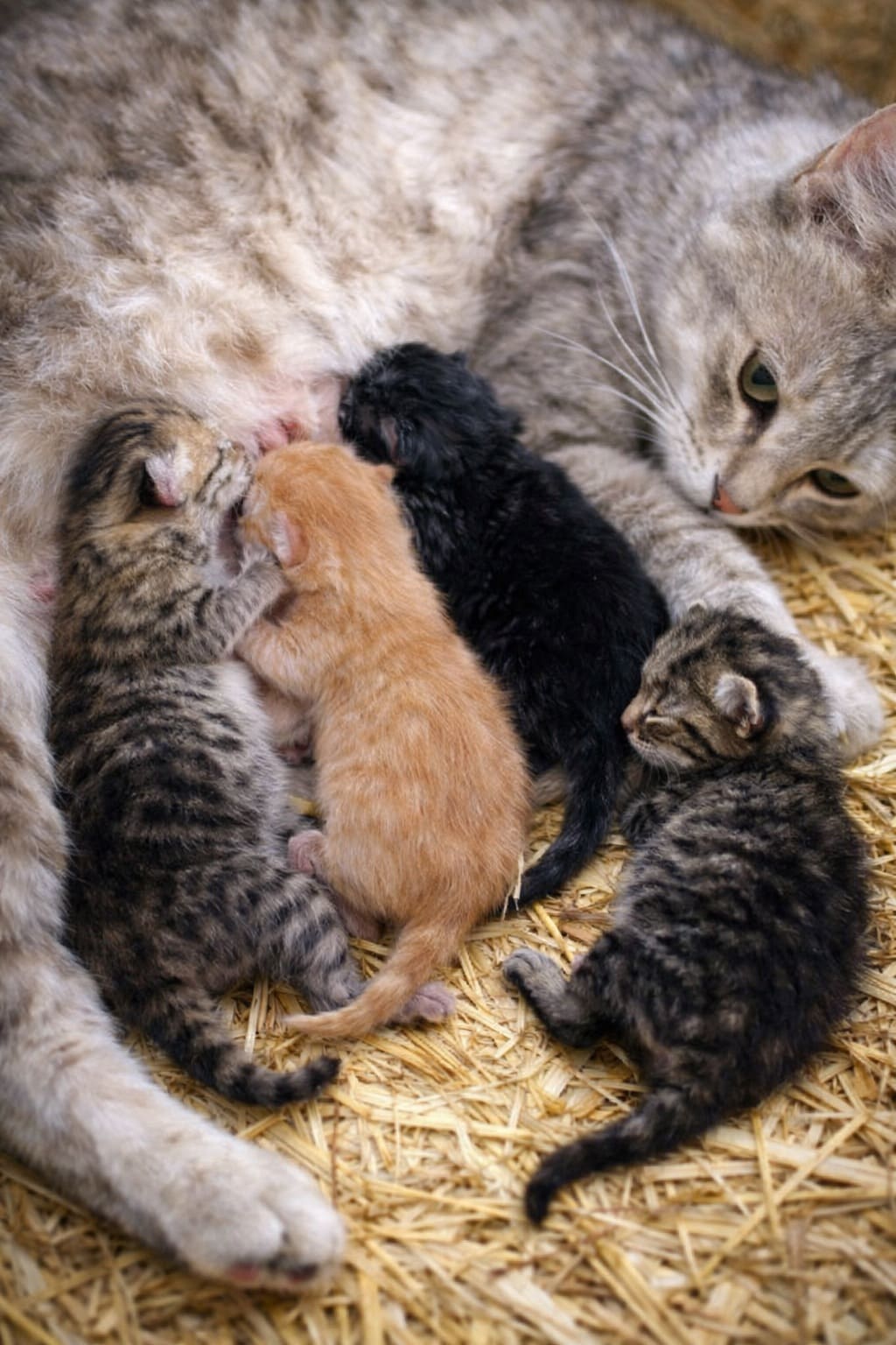 Кошка, проснувшись, первым делом оглядела деток. Все на месте. Потом оглядела людей, которые несли ее в коробке с котятами.