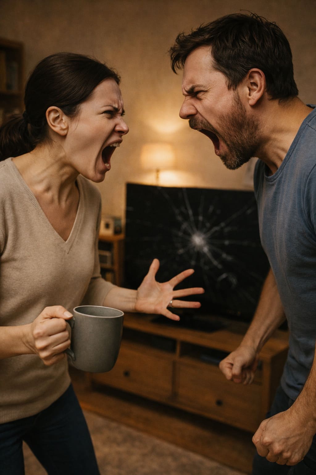 Словесная бойня разгоралась. Каждое слово — как лезвие. Ни один из них не слышал другого. Они утонули в упрёках, злости, обидах. Их кухня стала полем сражения, где не будет победителей — только двое измотанных, ожесточённых людей, не видящих уже выхода.