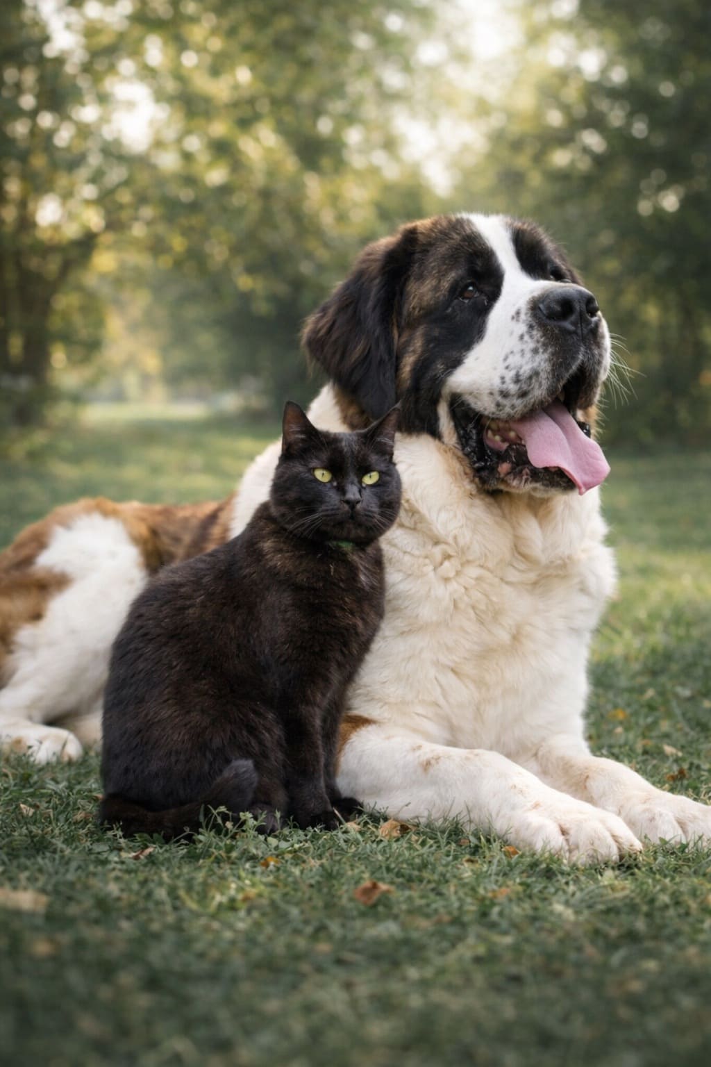 Огромный черный кот и сенбернар с такой умилительной мордой, что казалось, не может быть на этом свете никого, кто не улыбнулся бы, посмотрев на Тоби. Они выросли на руках у фермера…