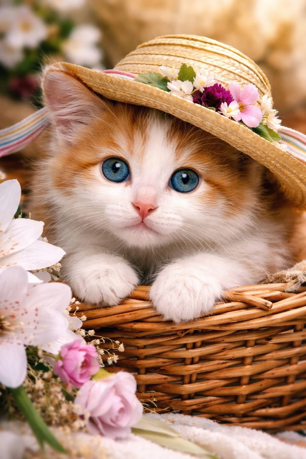 Но вместо загадочной бабушки на лавочке в корзинке сидела кошечка в такой же необычной соломенной шляпке.