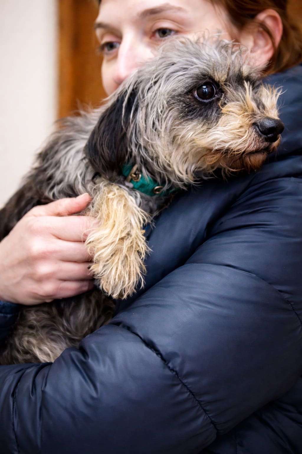 Длинная, неимоверно грязная шерсть несчастной свалялась, превратившись в колтуны, висела со всех сторон, словно толстые верёвки. Колтуны закрывали лапы и глаза. Заглянув в эти большие, испуганные, умоляющие собачьи глаза, Наташа решительно направилась к подъезду с собачкой на руках.