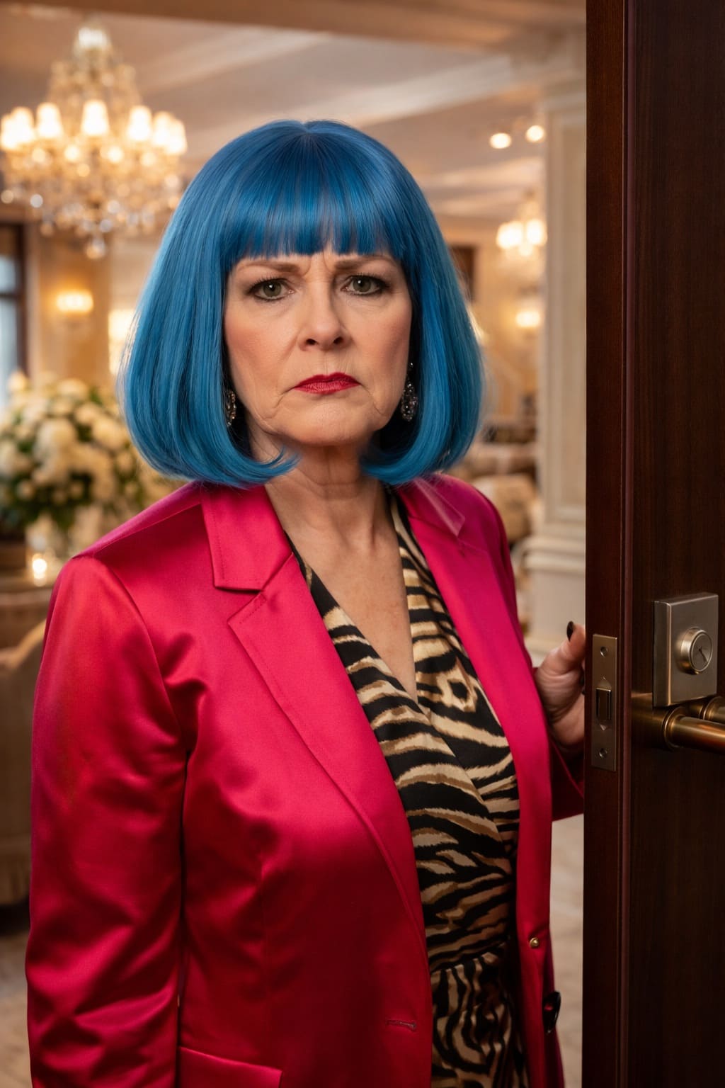 Валентина Петровна стояла передо мной в халате и платке, но из-под платка выбивались пряди совершенно синих волос. Не голубоватых, не с оттенком, а прямо синих, как у персонажа аниме.