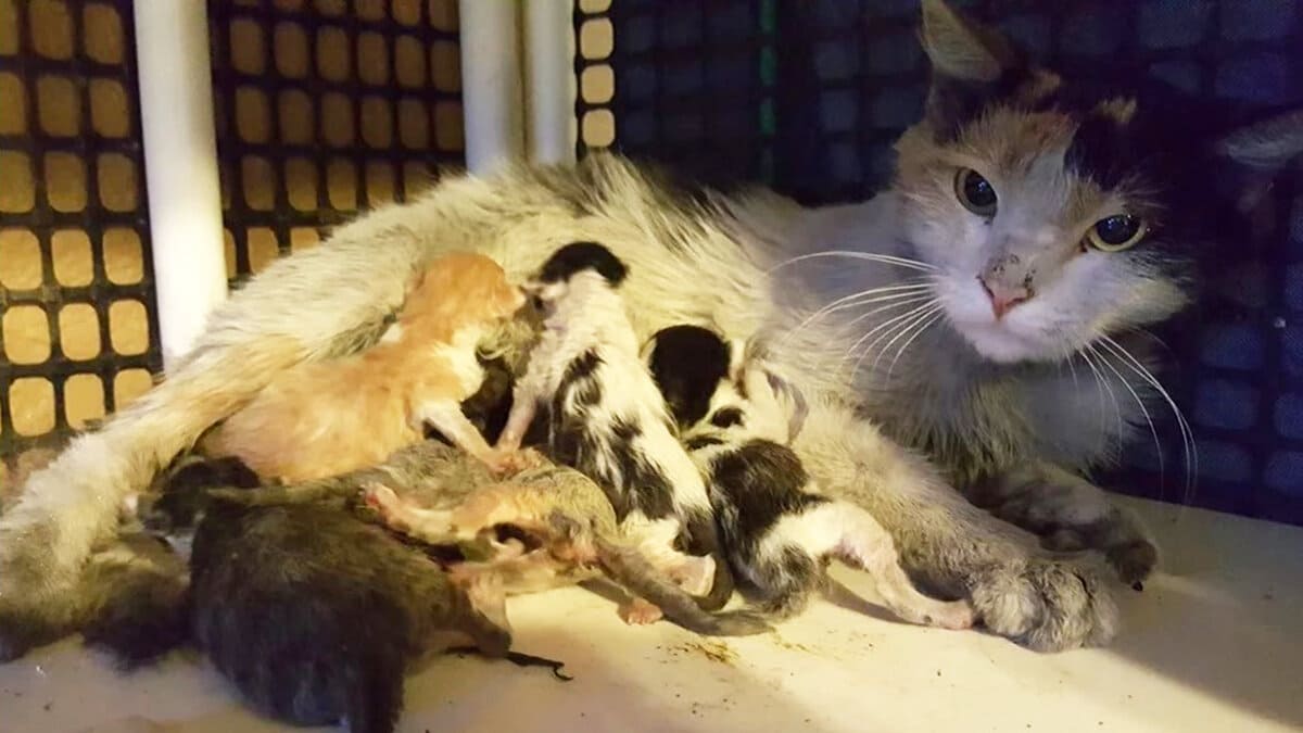 Шёл день за днём. Котята подрастали, а их мать всё более слабела. Позднее потомство высасывало вместе с молоком последние жизненные силы из старой кошки. Да и молока было немного.