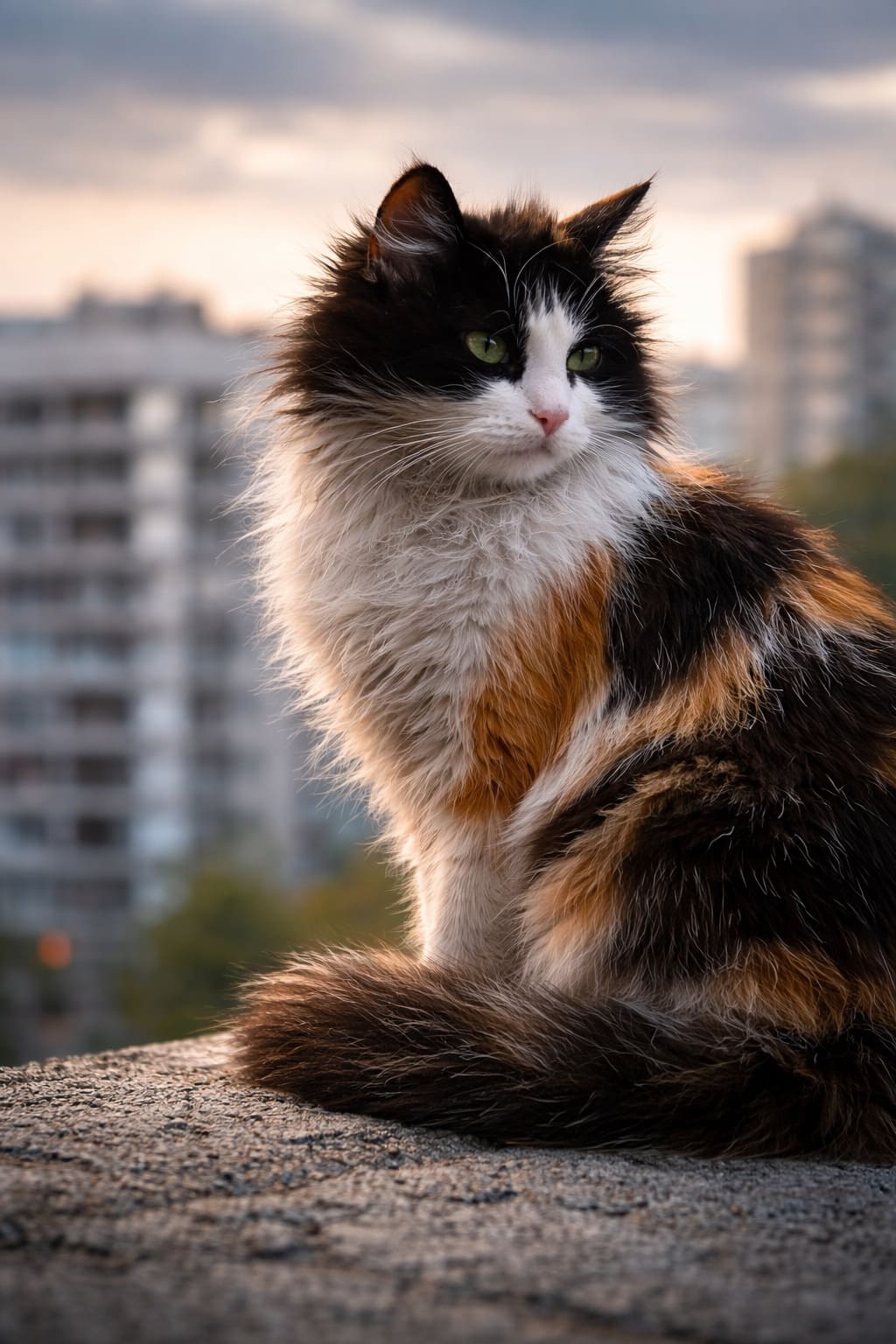 Вдруг к ним, выгнув спину и задрав распушённый хвост, подскочила лохматая трёхцветная кошка. Схватив кусок, она бросилась наутёк. Дерущиеся псы прервали свой поединок и побежали следом за наглой воровкой.