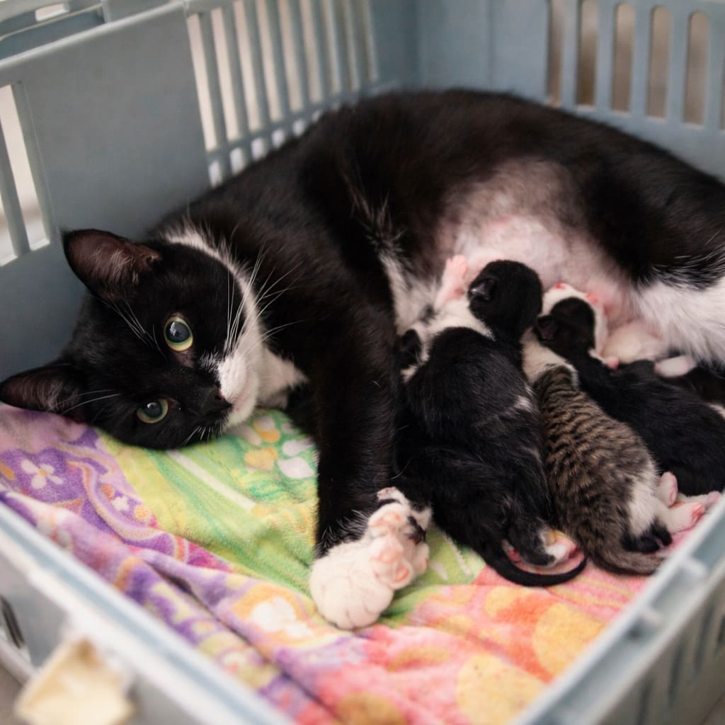 Проснувшиеся родные котята тоже прильнули к матери и начали кушать. Все дружно сосали материнское молоко. Обе пенсионерки облегченно вздохнули. Получилось.